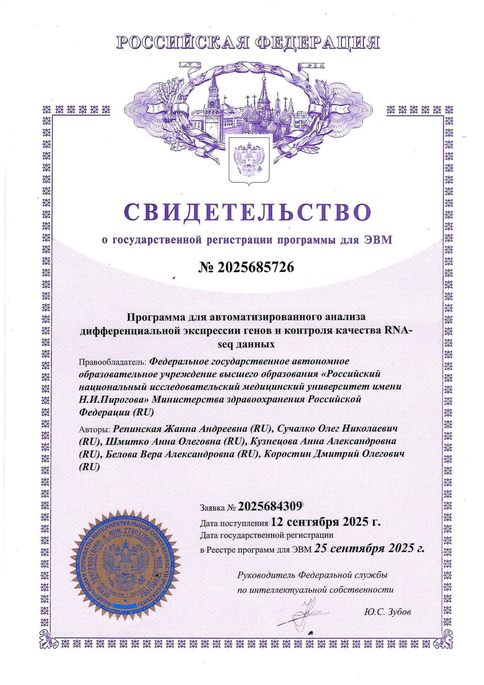 Запатентовано программное обеспечение для автоматизированного анализа дифференциальной экспрессии генов и контроля качества RNA-seq данных!